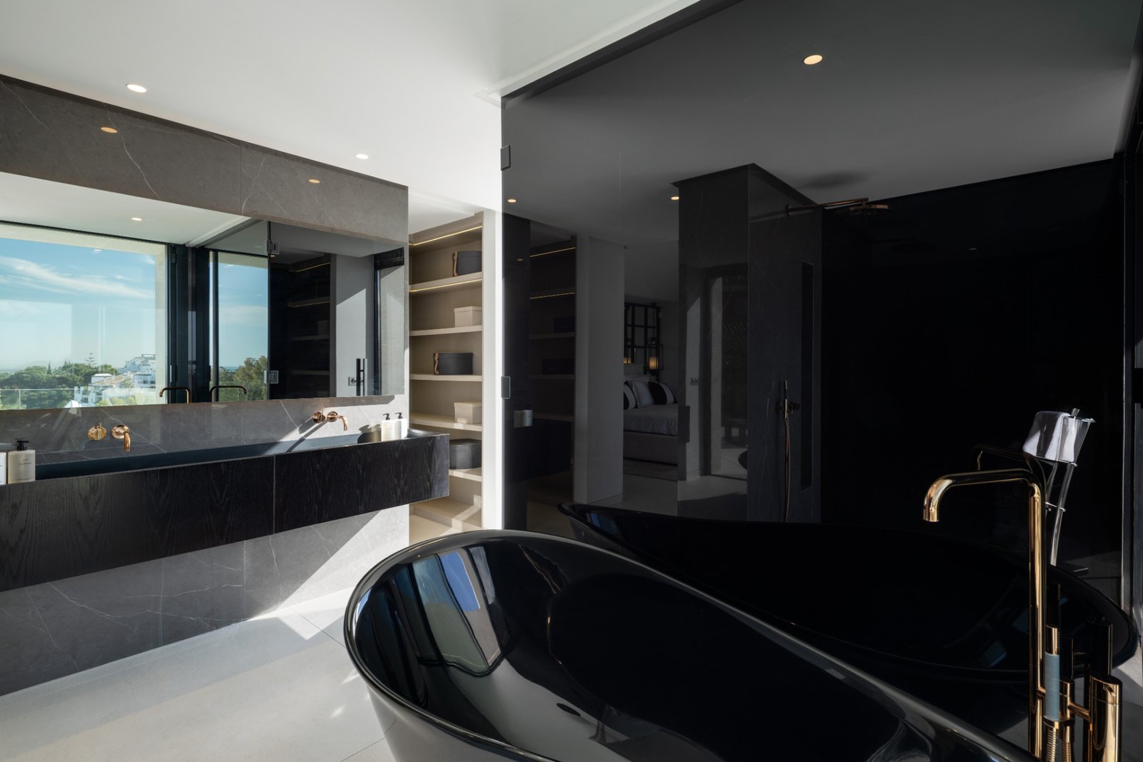 The villa is less than 10 minutes from Puerto Banús, Marbella, and San Pedro de Alcántara, offering close proximity to top beaches, fine dining (such as La Sala by the Sea and Magna Café), boutique shopping, and international schools including Aloha College and Colegio San José.
