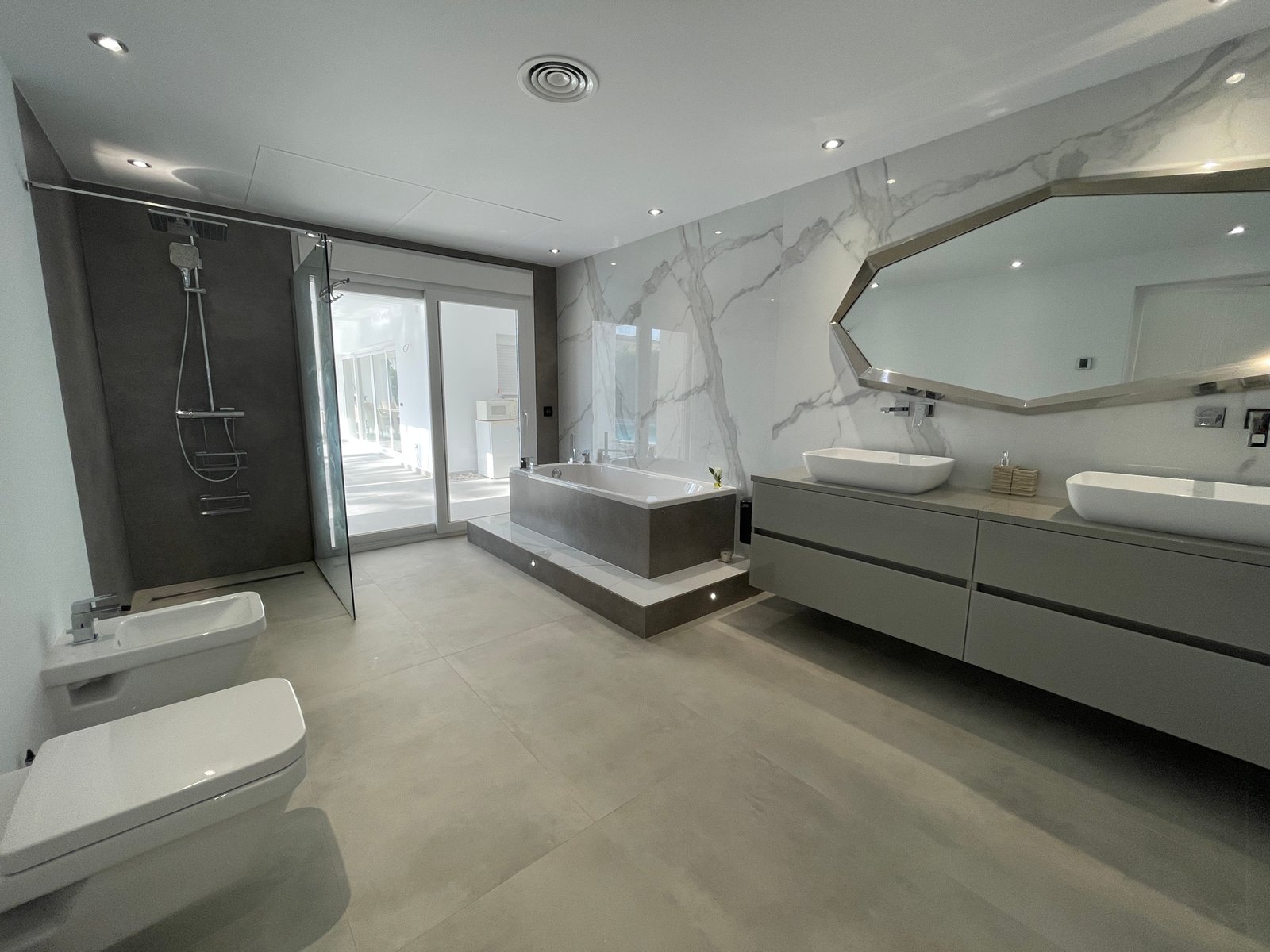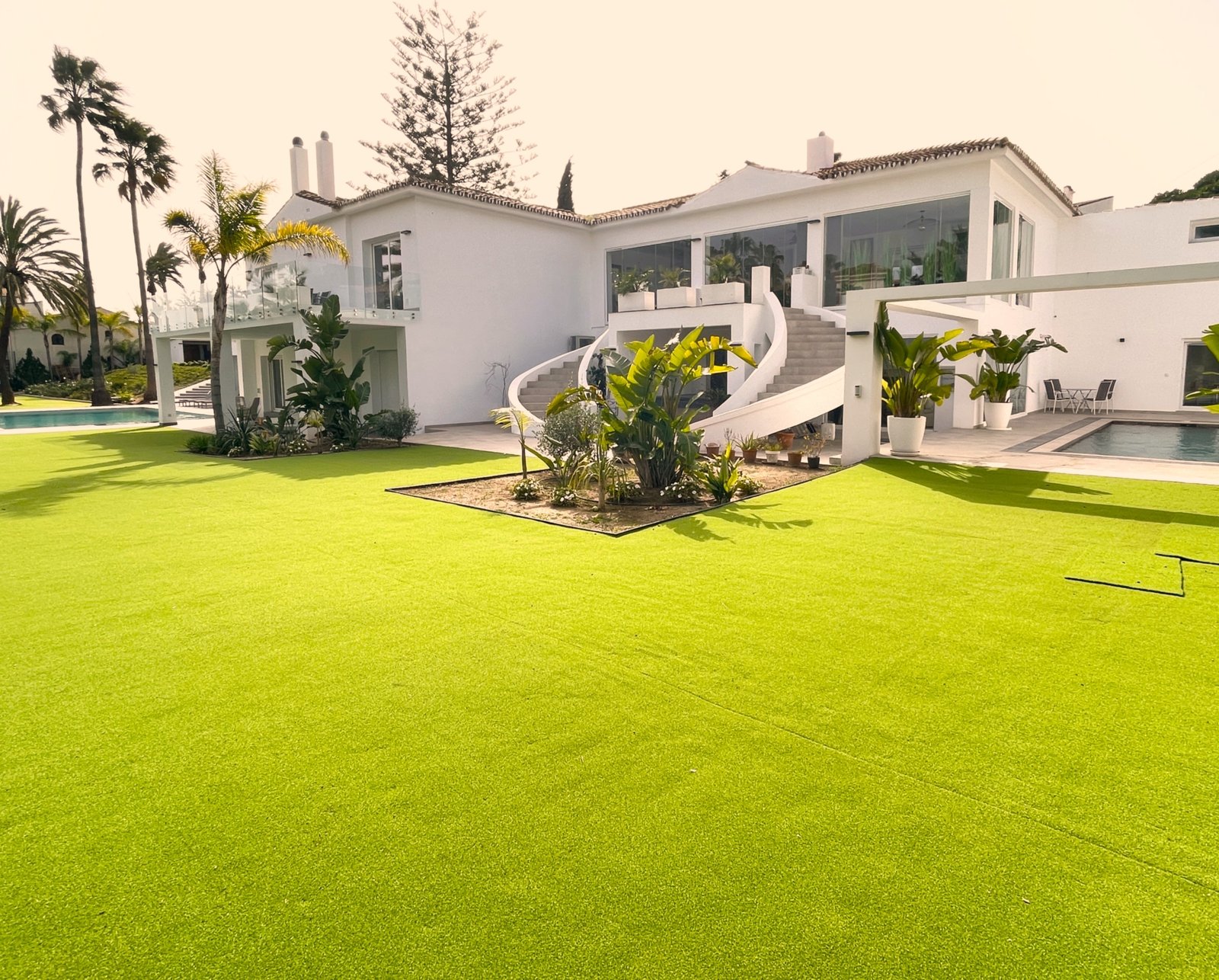 A once-in-a-lifetime estate: two fully independent villas on a 4,000 m² plot. 1,750 m² built, 10 beds, 10 baths, 3 living rooms. 3 pools, large hot tub, cinema, gym, sauna, playroom. Sports court (badminton/tennis/volleyball). Designer kitchen, bodega, outside BBQ kitchen. Multiple terraces (S/E/W + enclosed N). 4-person lift, underfloor heating (key rooms), double garage + parking for 10. A rare, showcase property