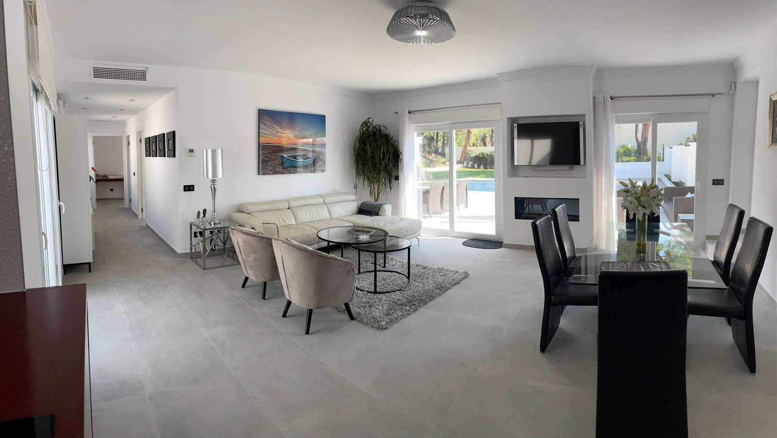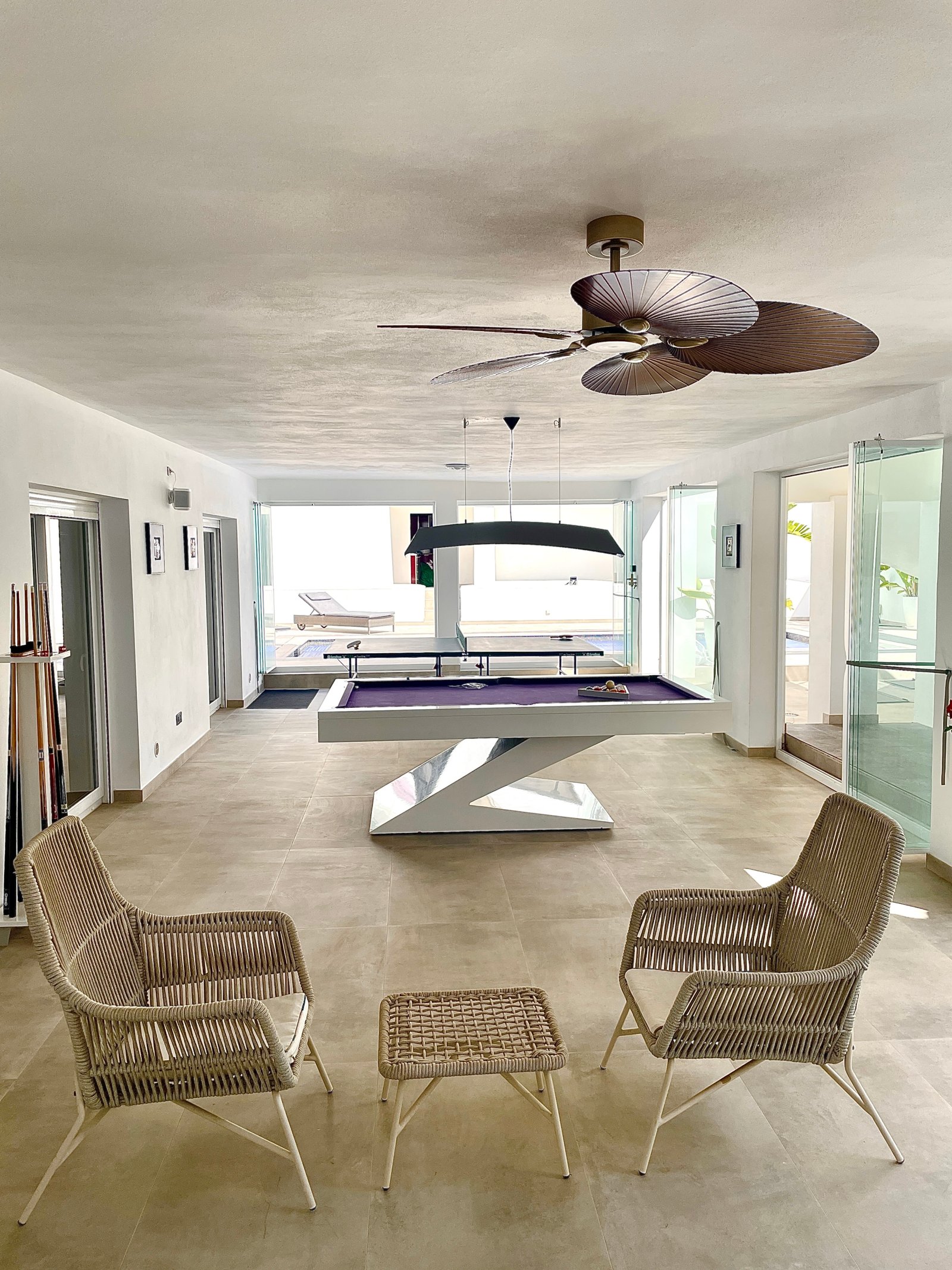 Outdoors is where this estate thrives: three swimming pools plus a large hot tub, an outdoor fitted BBQ kitchen, and wraparound terraces facing south, east, and west for all-day sun (with an enclosed north-facing terrace for sheltered evenings). The multi-sport court (badminton/tennis/volleyball) keeps the energy high, while mature landscaping frames every view.