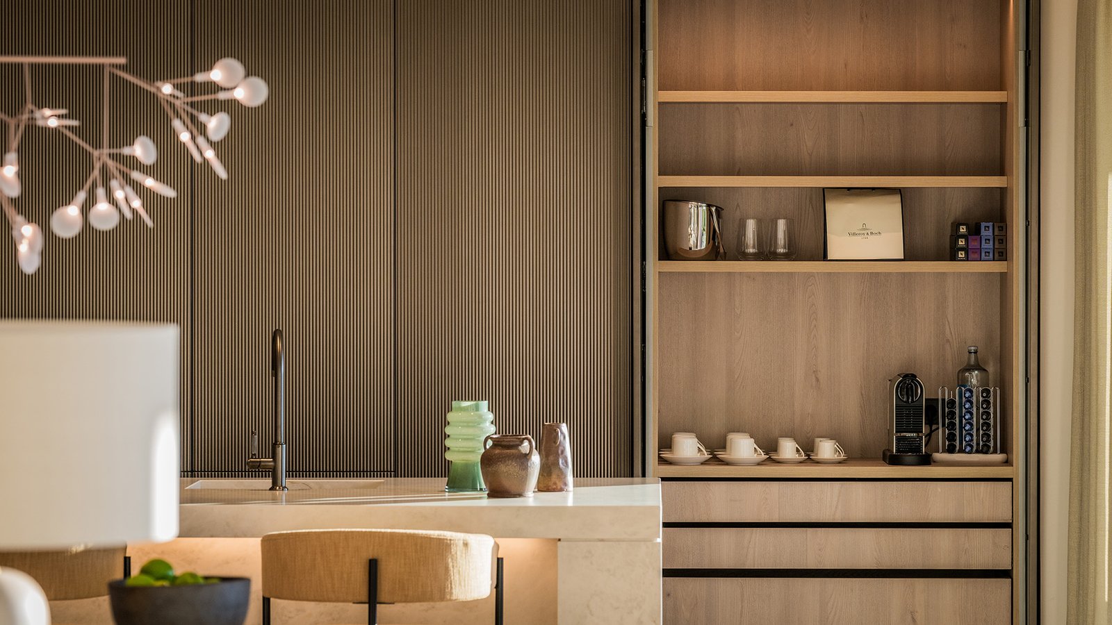 Here is also a buggy garage with direct access to the golf course. The roof terrace is every entertainers dream. Here you will find the outdoor kitchen, seating and dining areas, outdoor cinema and the villas second pool. All offering amazing views over the golf course and valley. In the basement there is a gym dressed in dark wooden walls and ceiling as well as the home office.