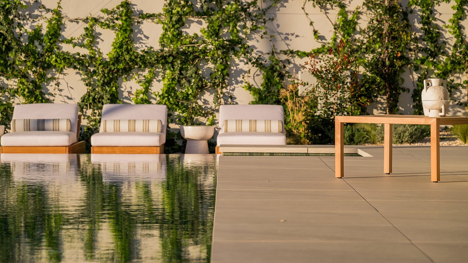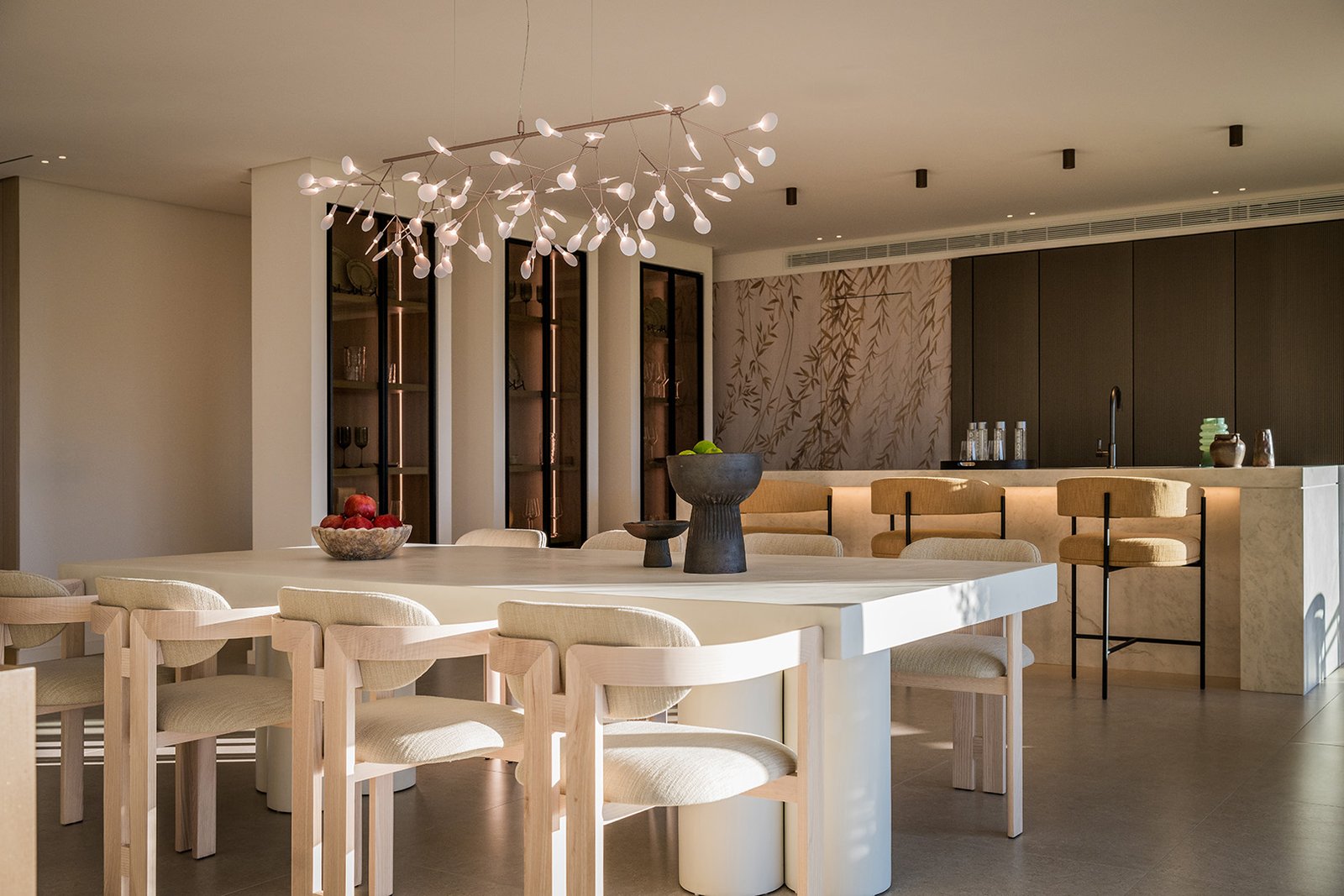 Furthermore, on this level there is 4 bedrooms, all en-suite and with its own terrace. The master bedroom with its almost 40 m2 includes a walk-in closet and designer bathroom in an open plan to create that luxurious suite feeling. The pool area and terrace offer several lounge areas and water features nicely connected with the pool.