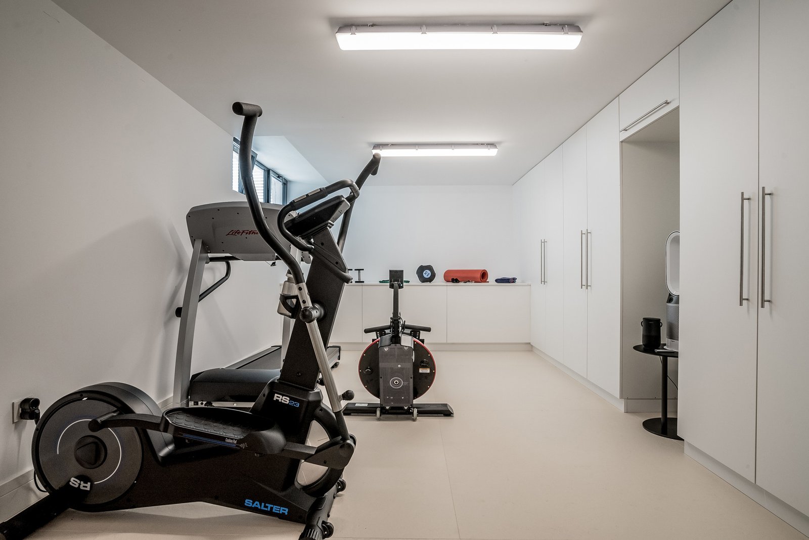 The villa’s interior is equally impressive, with a spacious, light-filled living area enhanced by modern ceiling lighting and a serene neutral colour palette. The open-plan dining area connects directly to a state-of-the-art kitchen, perfect for family gatherings and entertaining. A sophisticated sound system, available both indoors and outdoors, adds to the overall ambiance.