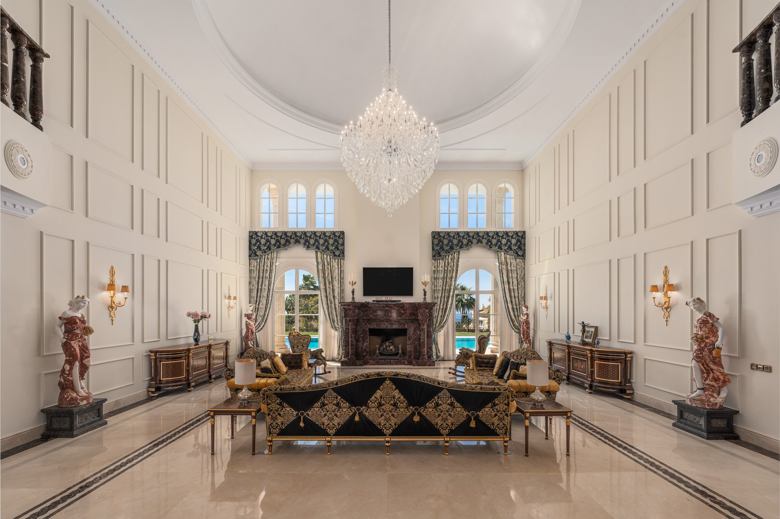 Villa Sinfonia is a remarkable three-floor estate for sale in the prestigious gated community of Sierra Blanca on the Costa del Sol. Built just ten years ago, this sophisticated residence seamlessly blends neoclassical architecture with modern luxury. The moment you enter, you’re greeted by an imposing foyer with a soaring 9-meter-high ceiling and the gleam of electric chandeliers, reflecting the elegance and thoughtful design that carries throughout the home.