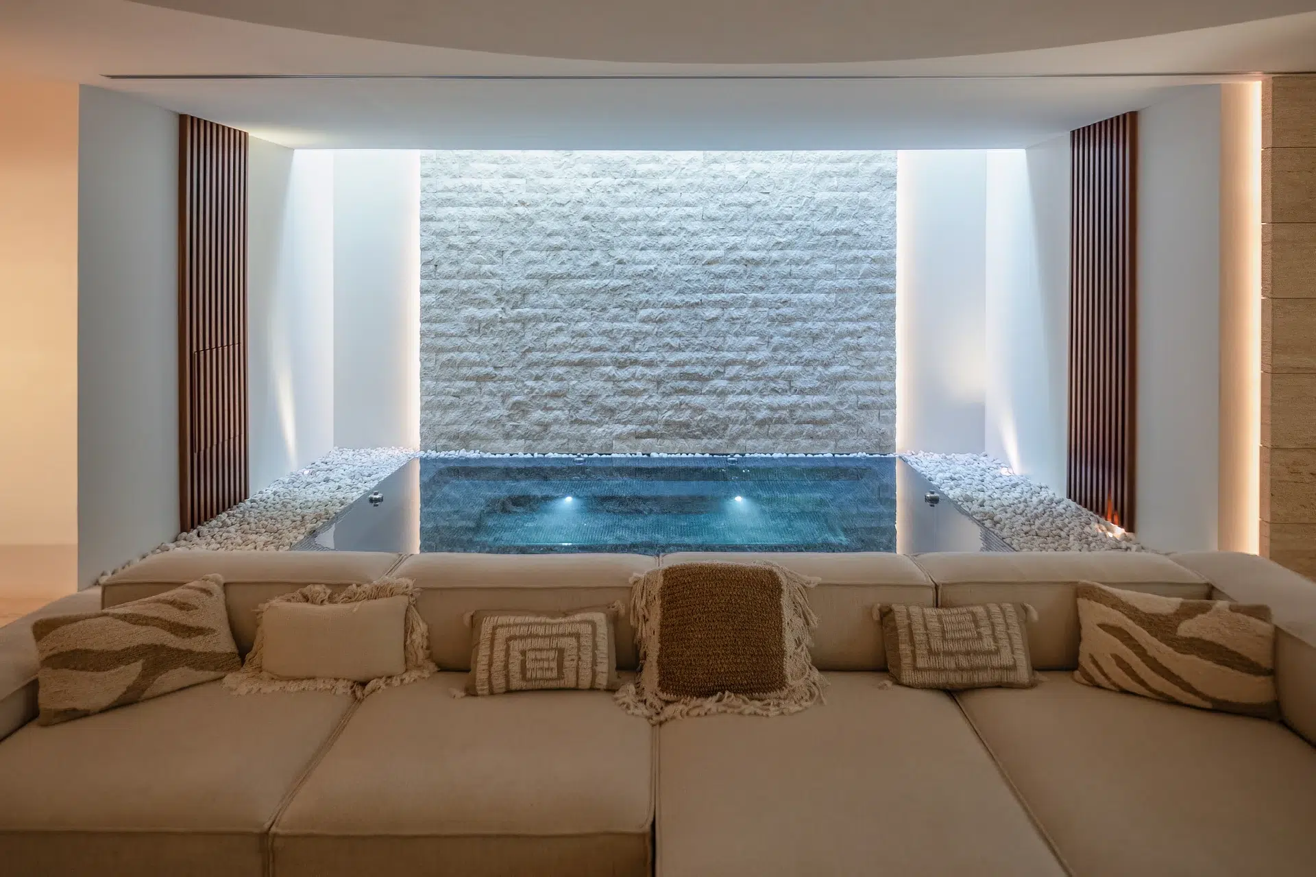 Set on a generous 3,416 m² plot with a built area of 1,174 m² distributed across three floors connected by a lift, Villa La Escondida offers exceptional living spaces designed for both comfort and sophistication. The residence features five luxurious bedrooms, a selection of refined living and dining areas, and a world-class collection of leisure facilities. These include a spa, private cinema, gym, sauna, steam room and both indoor and outdoor pools, all crafted to the highest standards of modern living. Expansive covered terraces flow seamlessly into the landscaped gardens, creating the ideal environment for entertaining. A spectacular infinity pool, complemented by outdoor lounges, dining areas, a summer kitchen and a bar, ensures that every moment spent here is framed by luxury and style.